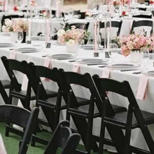 Elevate your event with our sleek black resin adult chairs, offering a modern and stylish seating option for weddings, p...