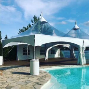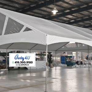 Create a classic and sophisticated setting with our Marquee Tent featuring a solid white top, offering spacious coverage...