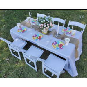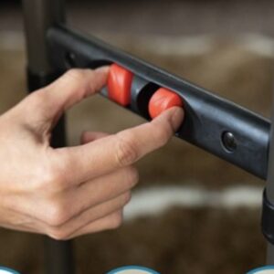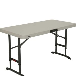# Adjusts With One Hand – Squeeze the buttons to easily adjust the table with one hand.
