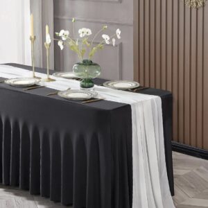 Black Table Skirt for Rectangle Tables 6ft,Fitted Tablecloth Table Skirt,Wrinkle Resistant Tablecloth Table Cloth Fitted Buffet Table Cover Tablecloth Covers