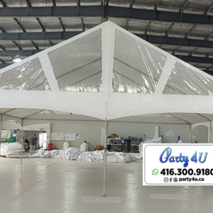 Host your event in style with our Frame Tent featuring a solid white top, offering a sleek, weather-resistant solution for any occasion.
